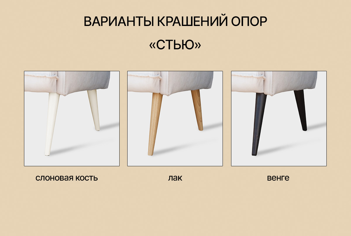 ✅ Ножки выполнены из массива натурального дерева, возможен окрас только в черный цвет.