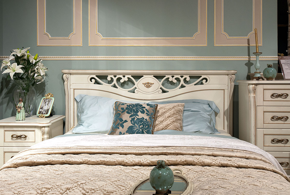 Кровать "Алези" с подьемным механизмом (низкое изножье), слоновая кость с золочением, с основанием, без матраса, (.Г000060641)