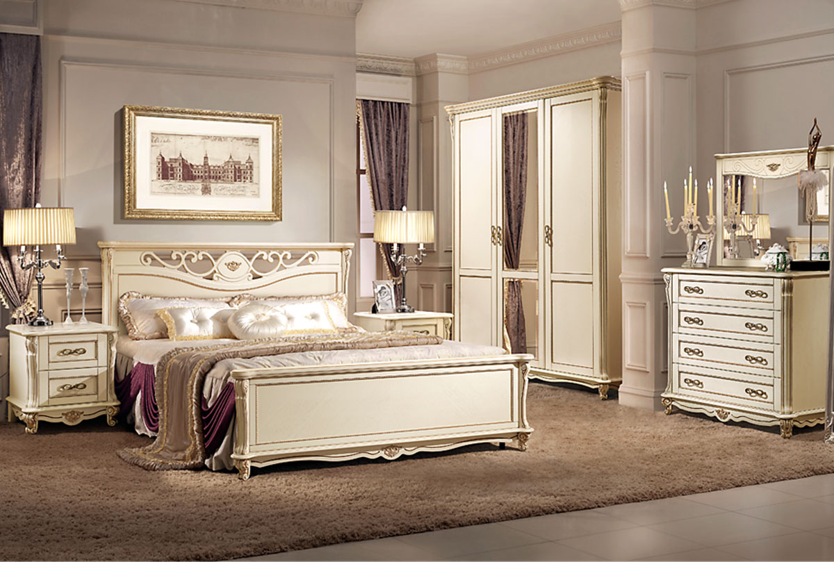 Кровать "Алези" с подьемным механизмом (низкое изножье), слоновая кость с золочением, с основанием, без матраса, (.Г000061104)
