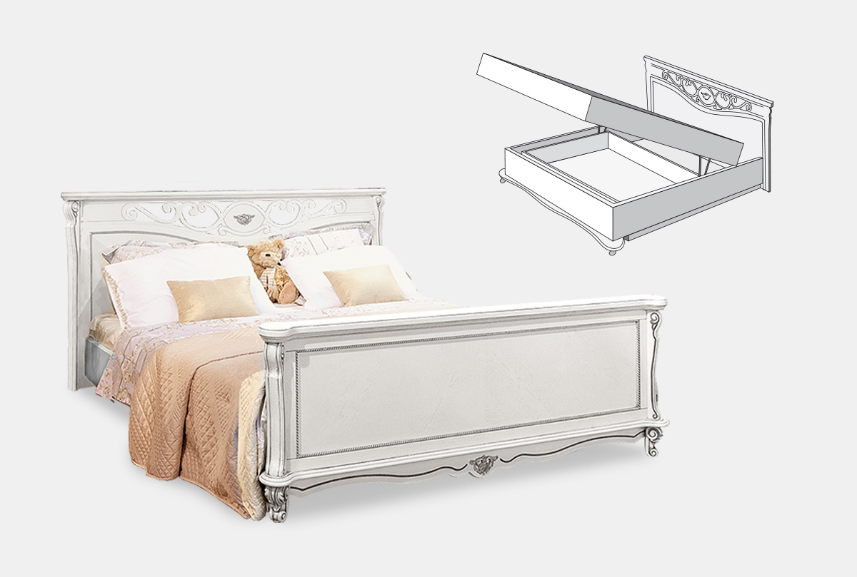 Кровать "Алези" с подьемным механизмом (высокое изножье), слоновая кость с серебром, с основанием, без матраса, (.Г000067915)