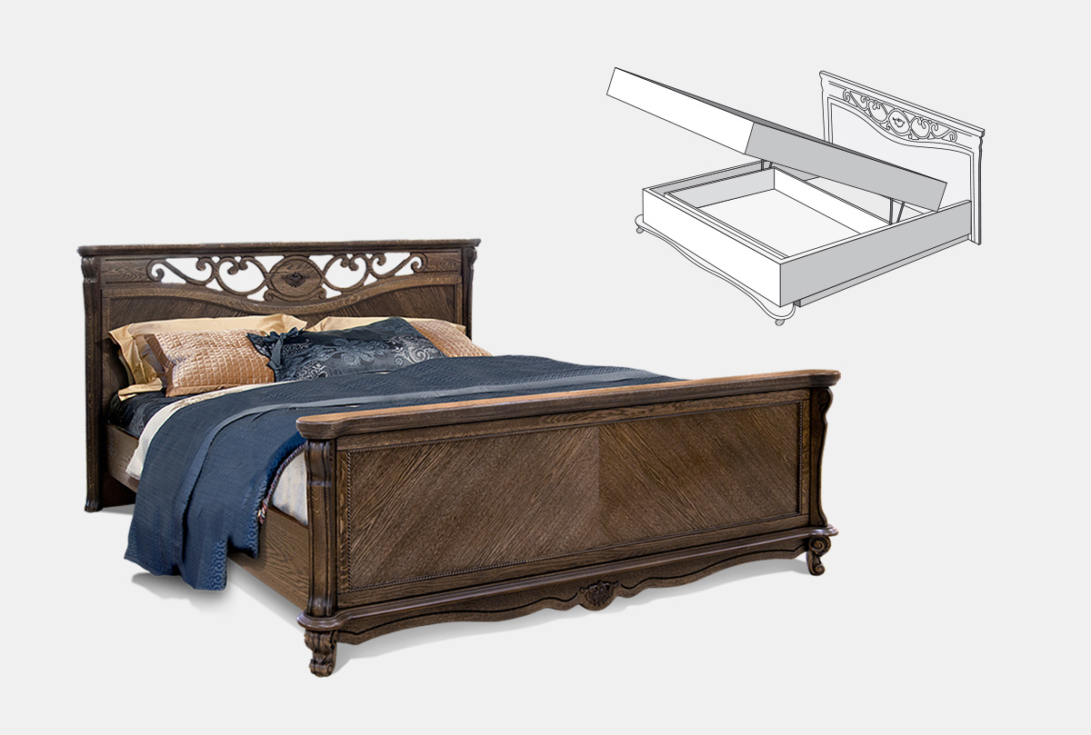 Кровать "Алези" с подьемным механизмом (высокое изножье), табак, с основанием, без матраса, (.Г000067923)