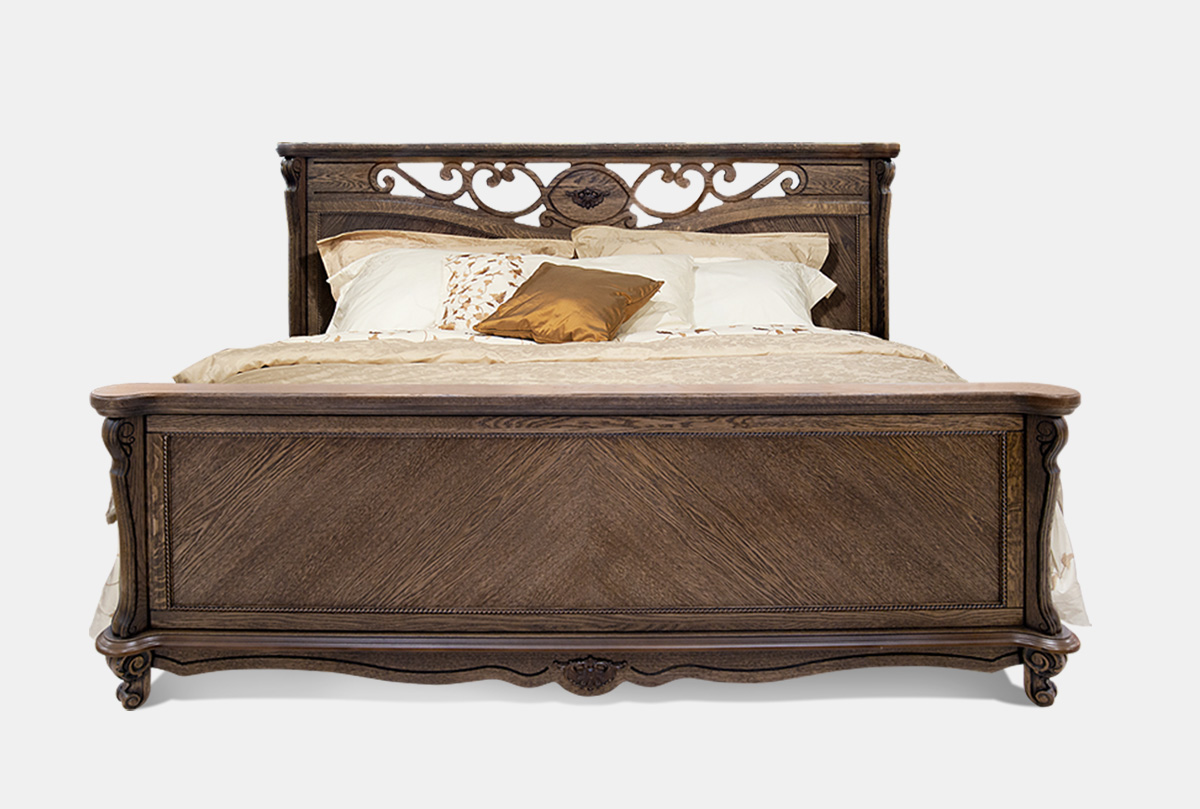 ✅ Декоративная ажурная резьба из массива дуба на изголовье.