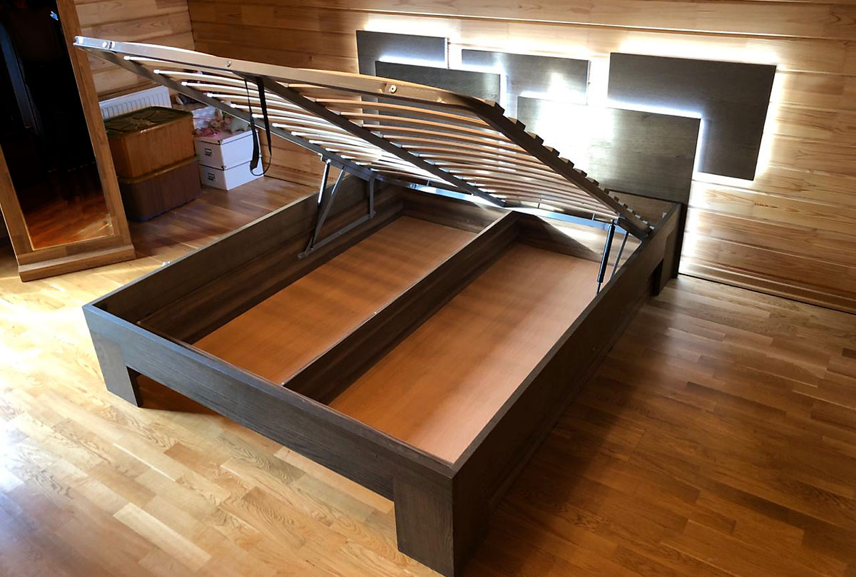 Выбрать и купить ортопедическое основание и матрас можно на данной странице в разделе «Вам также пригодится» или на сайте в разделе «Сопутствующие товары». Также вы можете установить бельевой ящик. Получается вместительный и удобный «шкаф» под кроватью. Не занимает места, позволяет легко получить доступ к вещам, так как легко поднимается. Угол открывания подъёмного механизма 36 градусов! Разные сезонные вещи: чемоданы, детские игрушки, запасные одеяла и многое другое прекрасно разместится в нем. Функционален, практичен и, с экономической стороны, полностью оправдывает вложения.