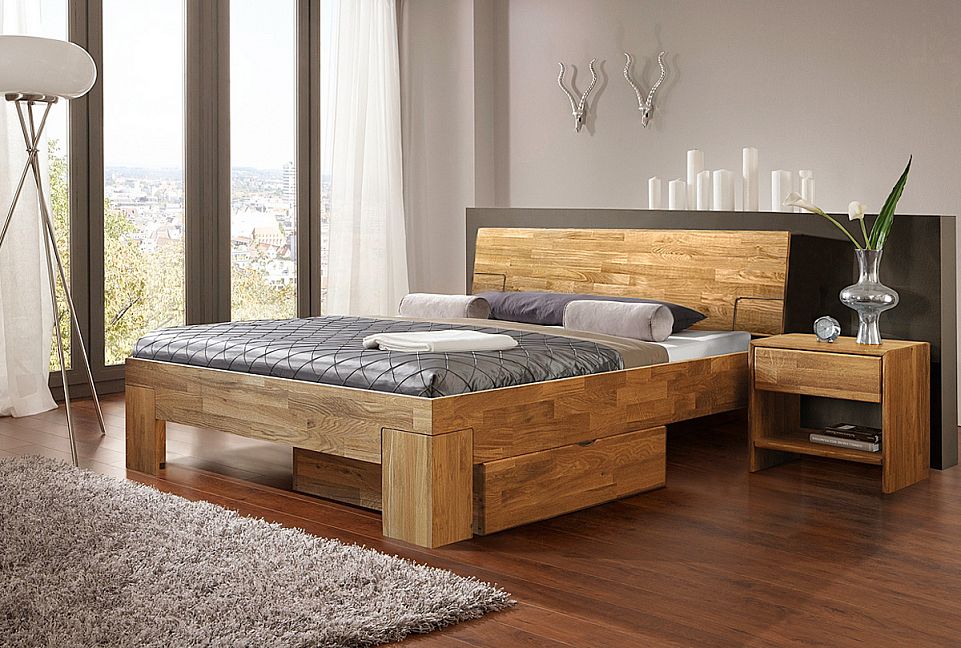 Двуспальная деревянная кровать «Берген» (Bergen) С 200 в цвете «бейц-масло» сделана из брусков массива дуба, которые специально не подбирались по рисунку. Кроме того, натуральная древесина пропитана исключительно бейц-маслом, защищающим ее от влаги, УФ-излучения и различных загрязнений. Низкое изножье позволяет подойти к кровати с трех сторон, а невысокая спинка дает возможность поставить кровать в помещении с ограниченной высотой потолков, к примеру, в мансарде. Чистота линий и материалов должна поддерживаться чистотой в помещении: этого легко достичь, благодаря высоте ножек кровати, которая позволяет без трудностей проводить влажную уборку. Двуспальная кровать подходит как для спальни, а односпальная кровать для детской или подростковой комнаты.