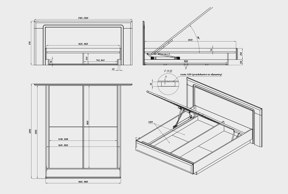 ✅ Модель оснащена прочным подъемным механизмом с мягким и бесшумным ходом, открывающим доступ к вместительному бельевому ящику — идеальное решение для хранения сезонного текстиля или дополнительных комплектов постельного. Конструкция устойчива, удобна в эксплуатации и рассчитана на долгие годы службы.