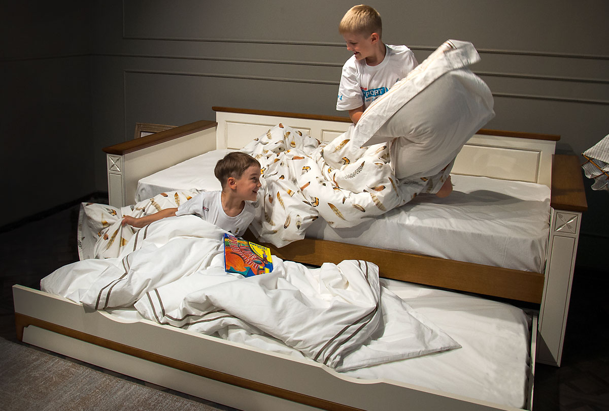 ✅ Верхнее спальное место, шириной 90 см, и нижнее, шириной 90 см, позволяют комфортно разместиться во время сна двум детям.