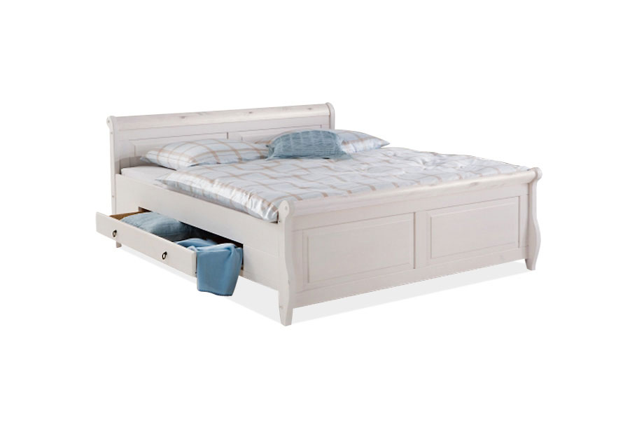 Кровать двуспальная "Мальта" 160 (с ящиками), белый воск, без основания, без матраса, (Б0000001048)