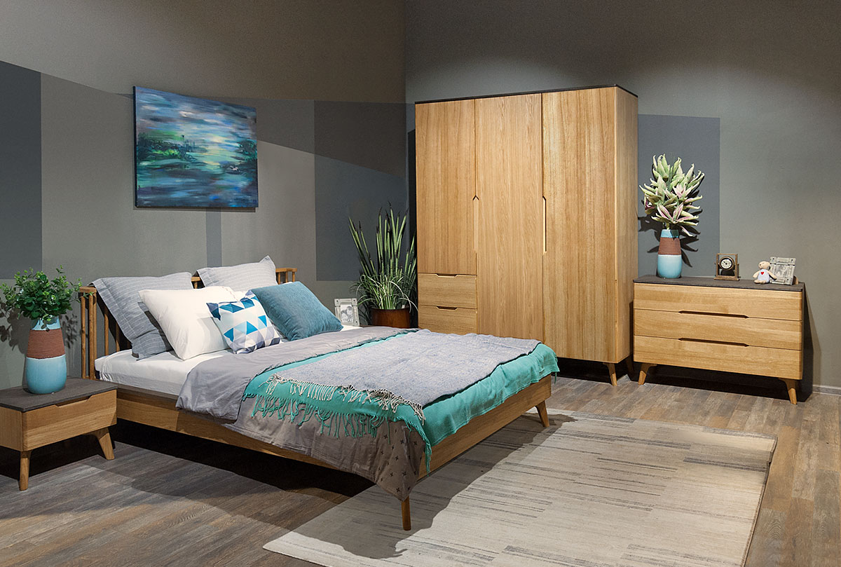 ✅ Высота ножек из массива дуба позволяет легко проводить влажную уборку, а чистота и свежесть в спальне очень важны.
