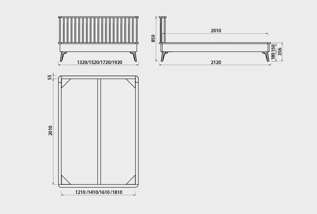 ✅ Ножки имеют скругленную (радиусную) форму по краям, что подчеркивает самобытный дизайн кровати.