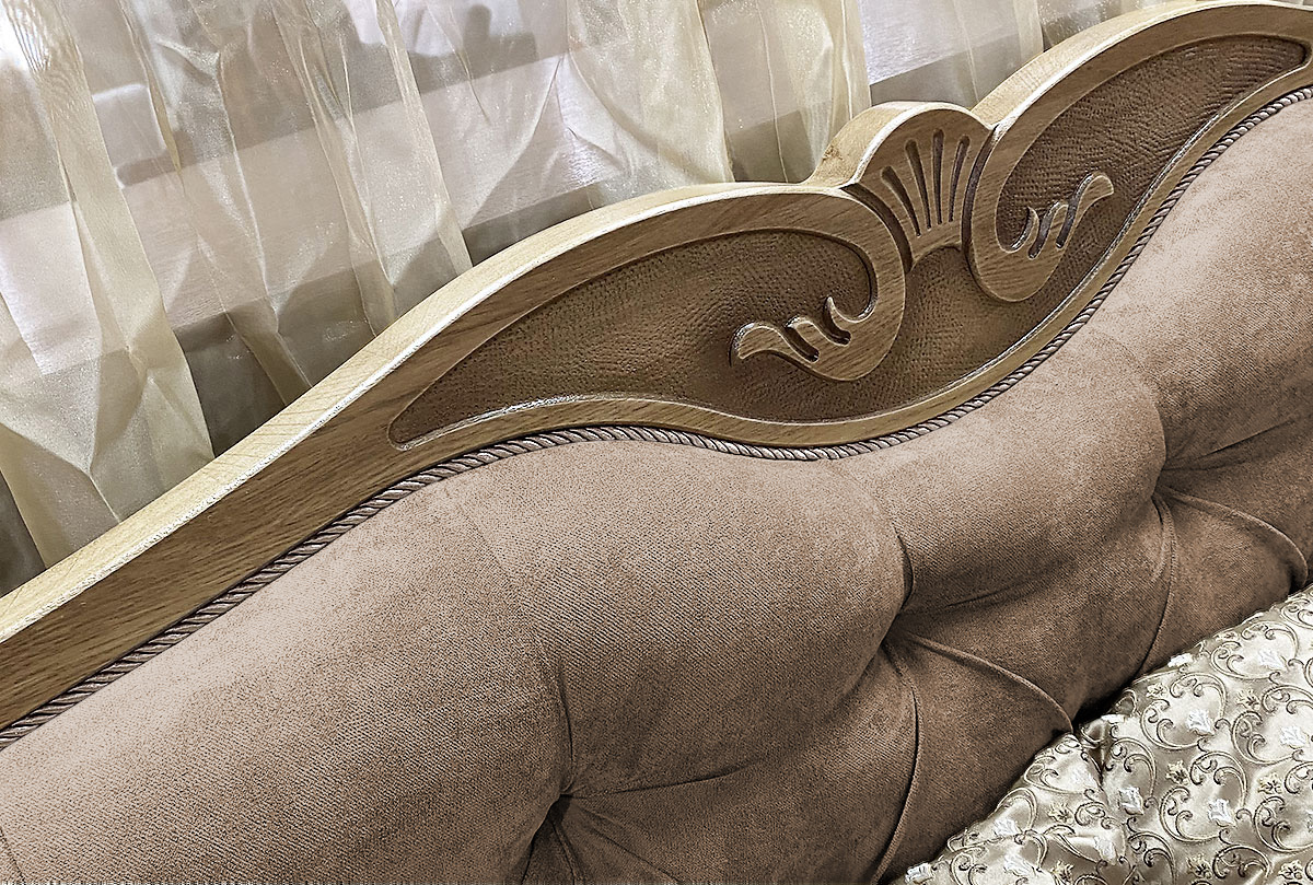 ✅ Высокое изголовье, обитое высококачественной тканью с элементами декоративной пиковки.
