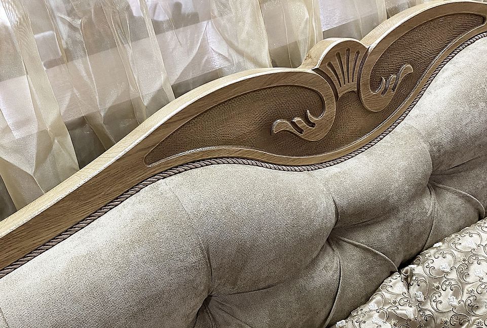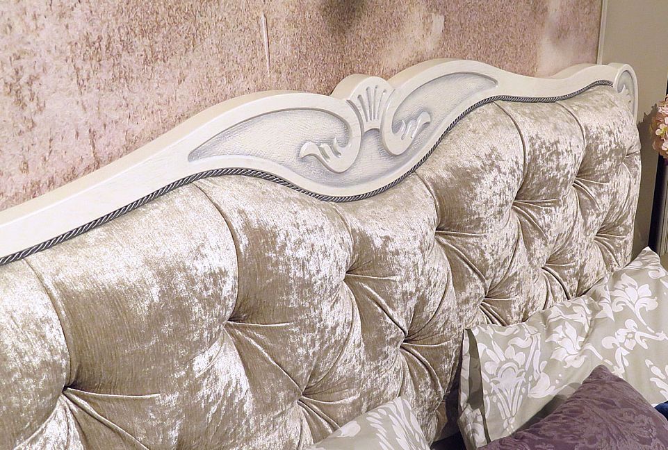 ✅ Высокое изголовье, обитое высококачественной тканью с элементами декоративной пиковки.