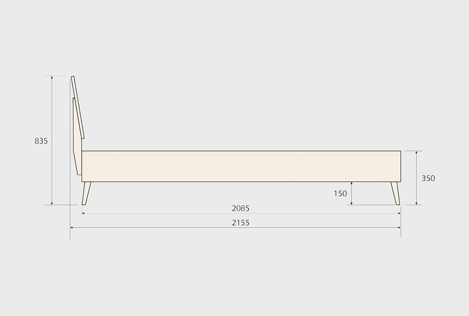 ✅ Основание кровати располагается на высоте 350 мм от пола, а свободное пространство в 150 мм под ней удобно для уборки роботом-пылесосом или хранения.
