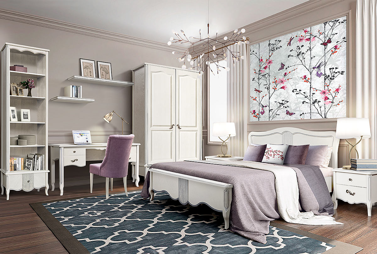 Утонченная кровать «Катрин» в цвете "альба с серебряной патиной" выглядит очень изящно благодаря волнообразной форме изголовье и изножья, нанесенной вручную патины. Низкое изножье позволит подойти к кровати с любой из трех сторон, а высокая спинка – удобно расположиться за чтением книги или просмотром кинофильма. Изящно-изогнутые высокие ножки позволят без труда проводить влажную уборку, что, несомненно, немаловажно в спальне. Кровать выполнена из массива и шпона дуба. Двуспальная кровать подходит как для спальни, а односпальная кровать для детской или подростковой комнаты.