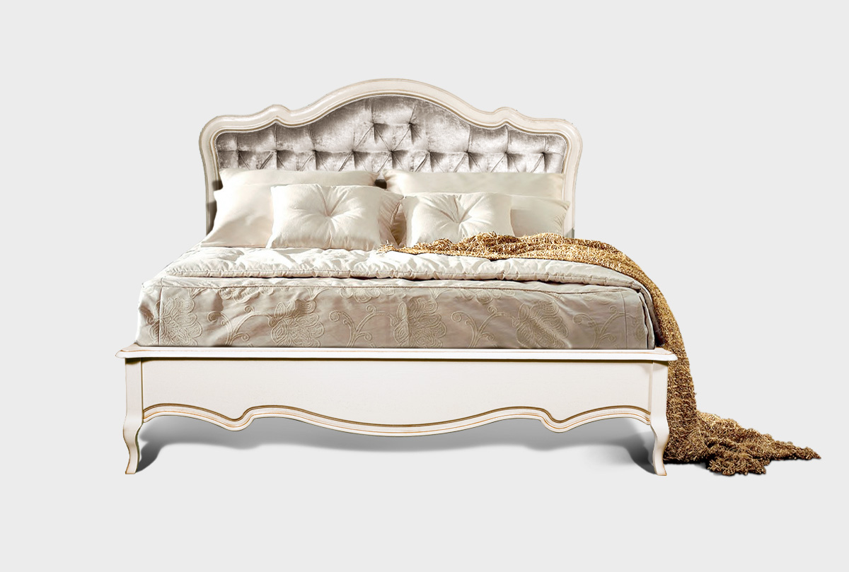 Вы любите роскошь и красоту, но при этом не намерены отказываться от комфорта и удобства? Взгляните на комбинированную кровать «Трио» 180х200 см в цвете « белая эмаль с золотой патиной» с обвикой «И-11» - она сможет удовлетворить даже самый взыскательный вкус. Фигурное по форме мягкое изголовье с «каретной стяжкой» придает кровати царский вид, высокая спинка позволит Вам опереться на нее при чтении книги или просмотре фильма.