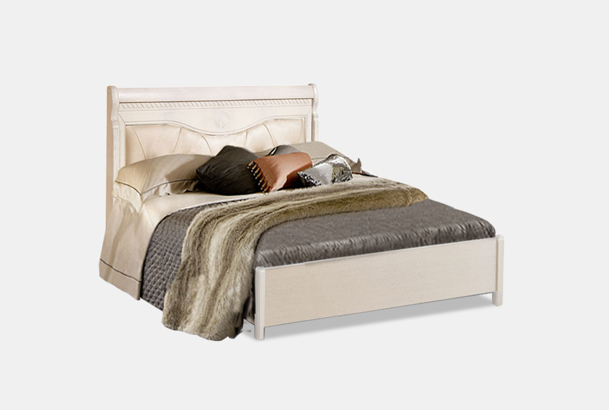 Двуспальная кровать «Лика» в цвете «белая эмаль», со спальным местом 90х200 см, с низким изножьем и мягким изголовьем выполнена из древесины – массива и шпона дуба. Соединяя в себе классические каноны и современные технологии, кровать «Лика» (Lika) отличается декоративной резьбой, мягкой натуральной кожей в обивке изголовья (LG0505Р) и изысканными крашениями.