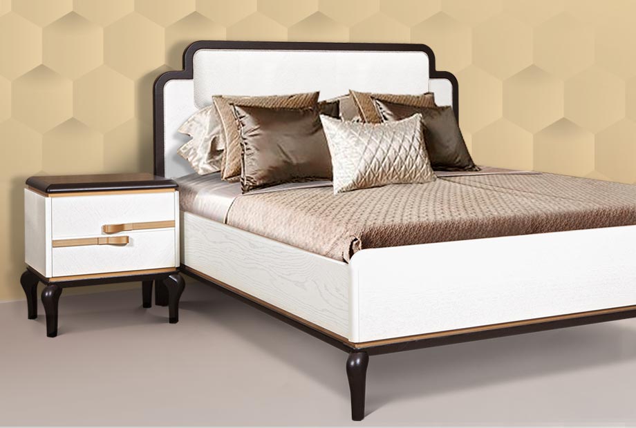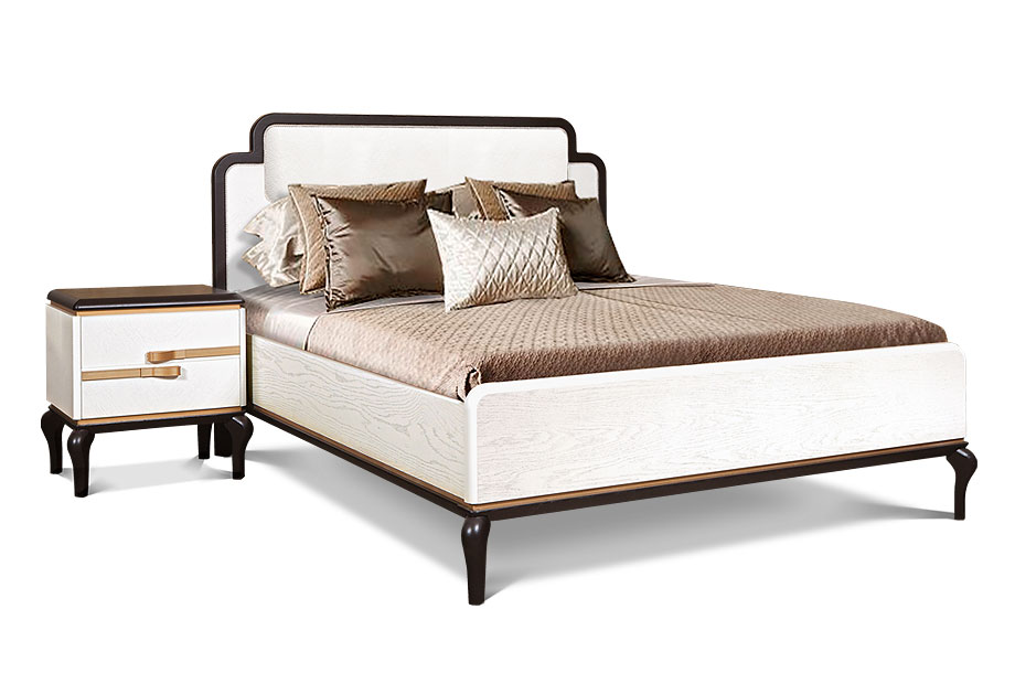 Роскошная кровать из коллекции «Мадлен» (Madlen) преобразит Вашу спальню, наполнит ее теплом за счет удивительного цвета «альба+черная эмаль», наличие мягкого изголовья добавит уюта, а фигурные ножки придадут образу легкость.