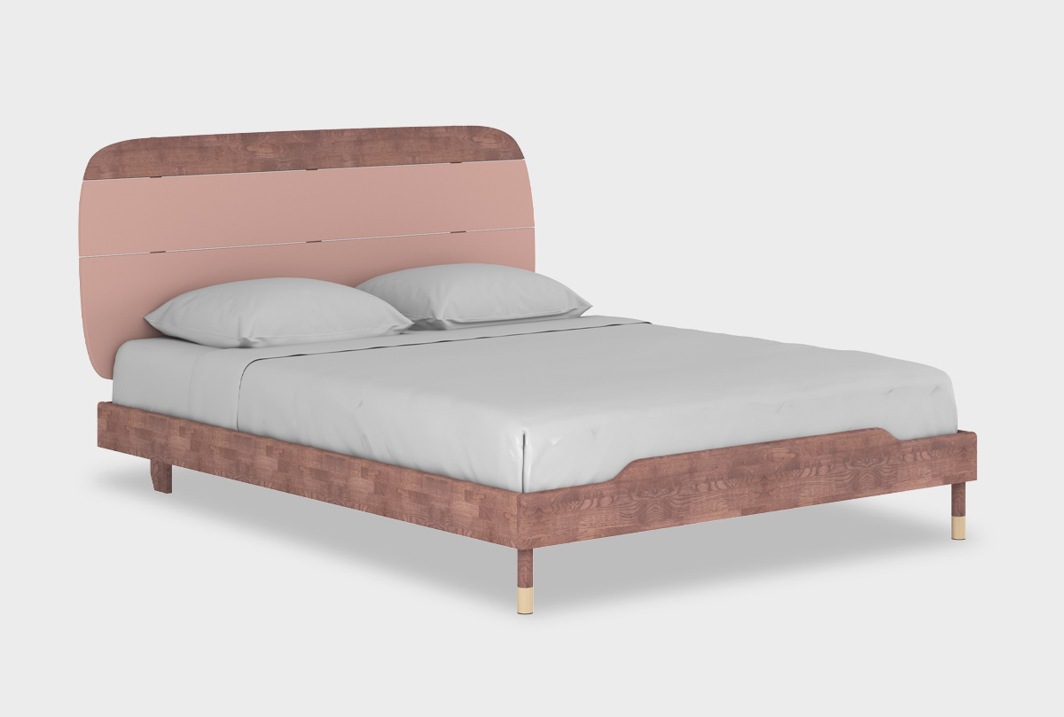 Двуспальная кровать «Меридиан» изготовлена из дуба. Цвет корпуса — «шоколадный дуб», цвет изголовья — «дымчатая роза». Размер спального места — 160 см.