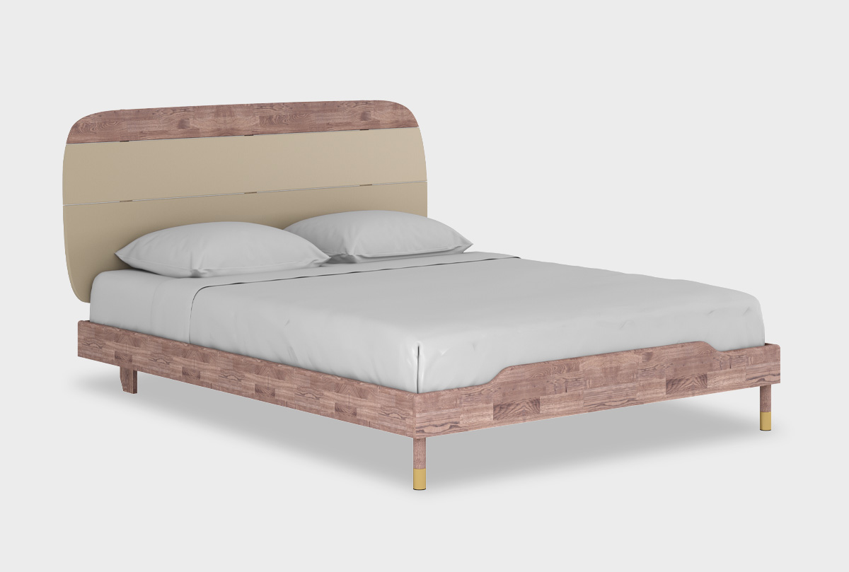 Двуспальная кровать «Меридиан» изготовлена из дуба. Цвет корпуса — «торфяной дуб», цвет изголовья — «мускат». Размер спального места — 180 см.