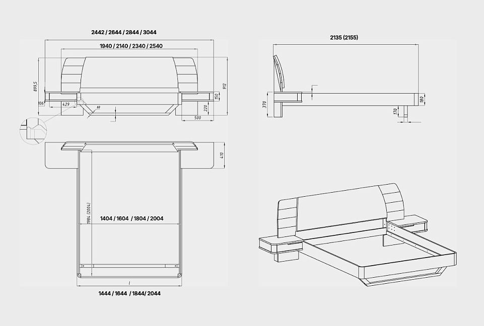 ✅ Кровать доступна в нескольких размерах спального места: 1400х2000 мм, 1600х2000 мм, 1800х2000 мм, 2000х2000 мм и 1600х2200 мм, что позволяет выбрать оптимальное решение для любой спальни.