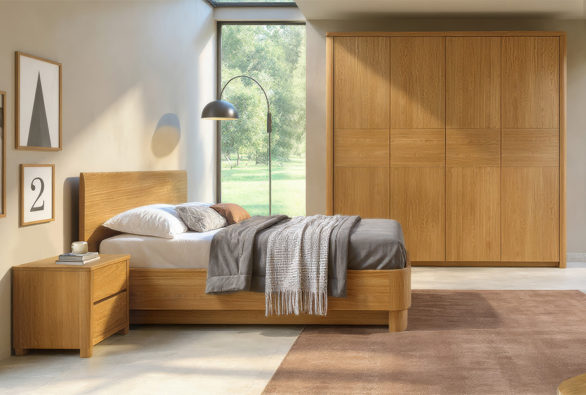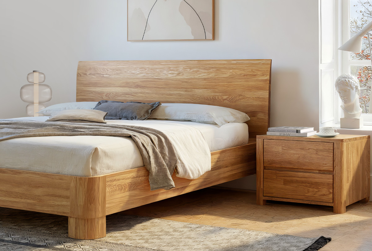 ✅ Несмотря на минималистичный дизайн, царги кровати изготавливаются из утолщенного массива, искусно подобранного по цвету и фактуре благородного дуба, что создает не только безупречный вид, но и долговечность.