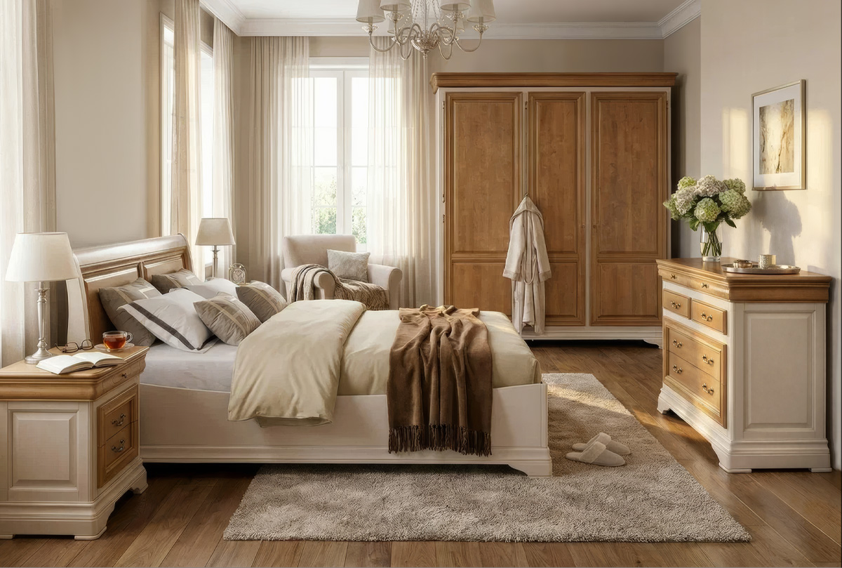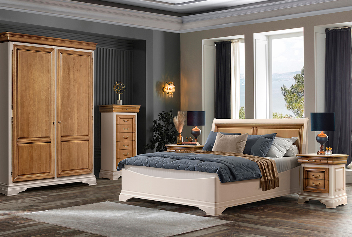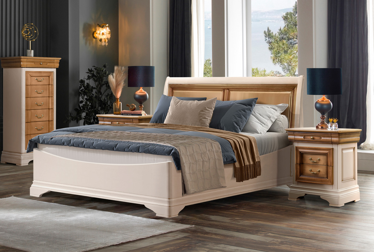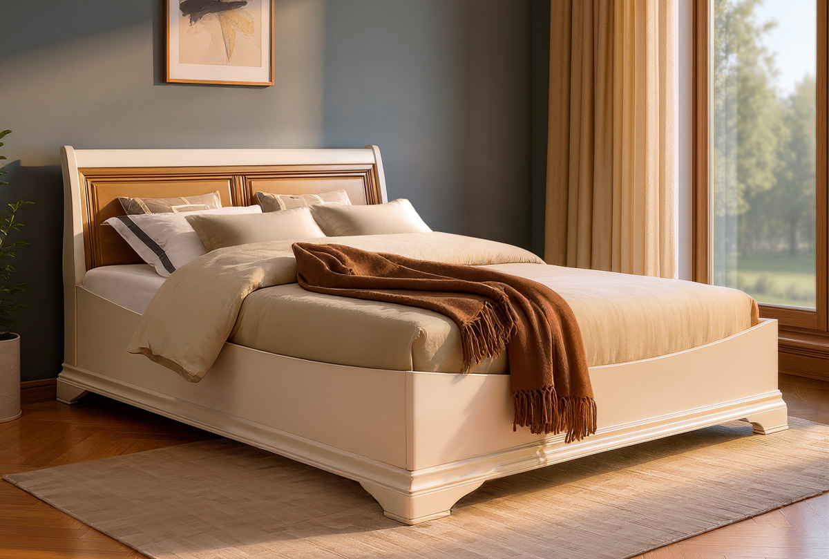 ✅ Кровать изготовлена из массива и шпона ольхи.