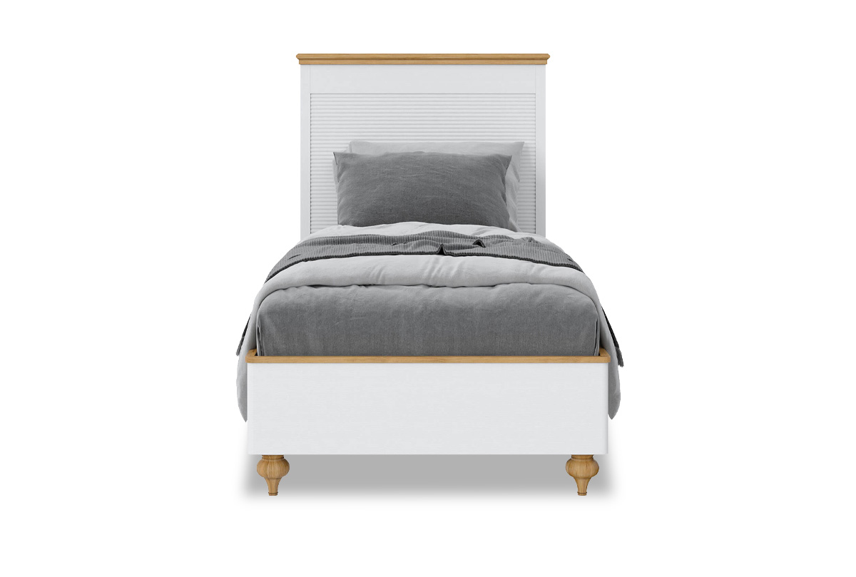 Односпальная кровать «Рандеву» (900х2000 мм) в цвете «белый лак+антик 24» – это простой классический дизайн в уверенном исполнении из натурального дерева. Она оснащена красивым изголовьем, без изножья. Высокие ножки – удачное решение для быстрого доступа во время уборки.