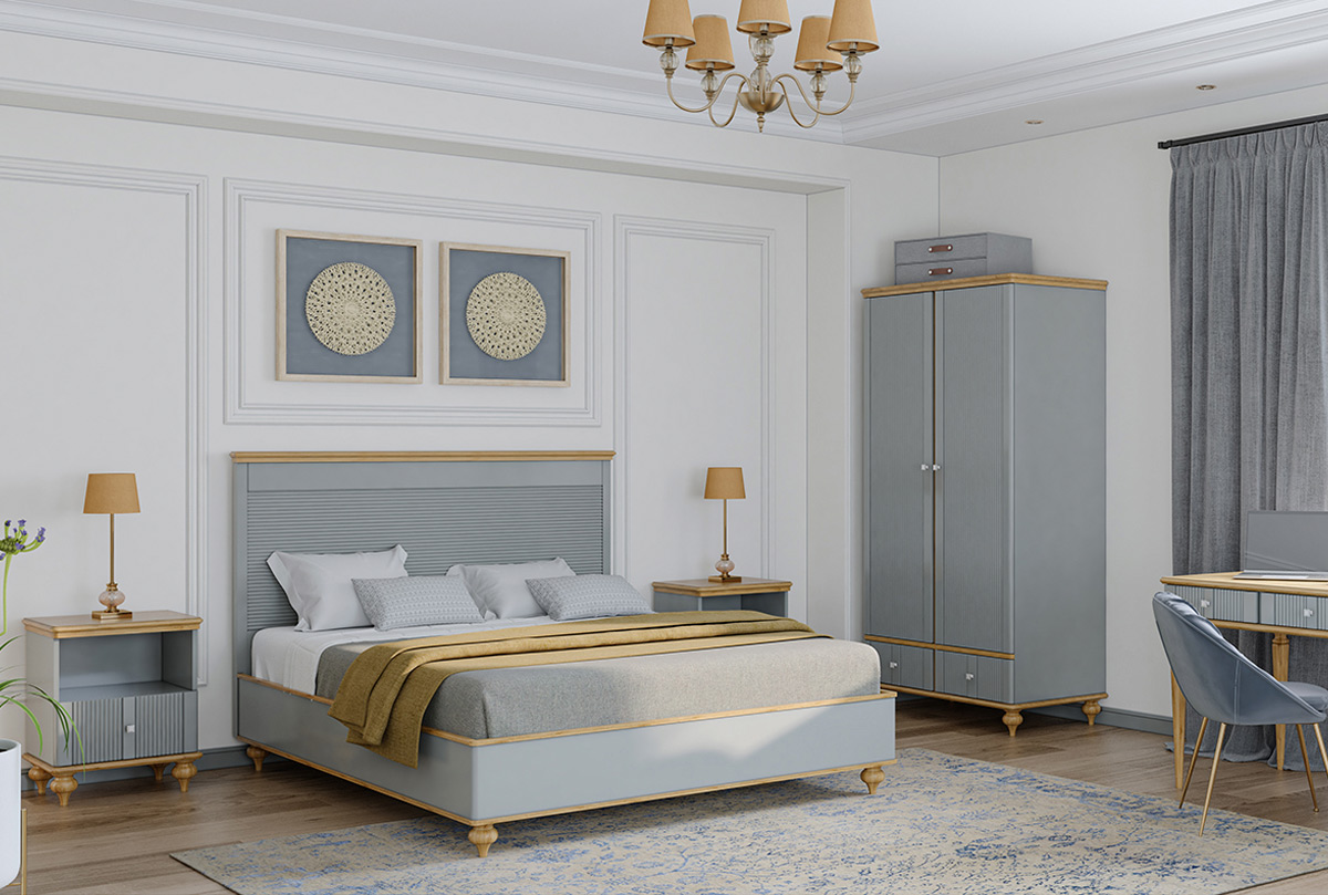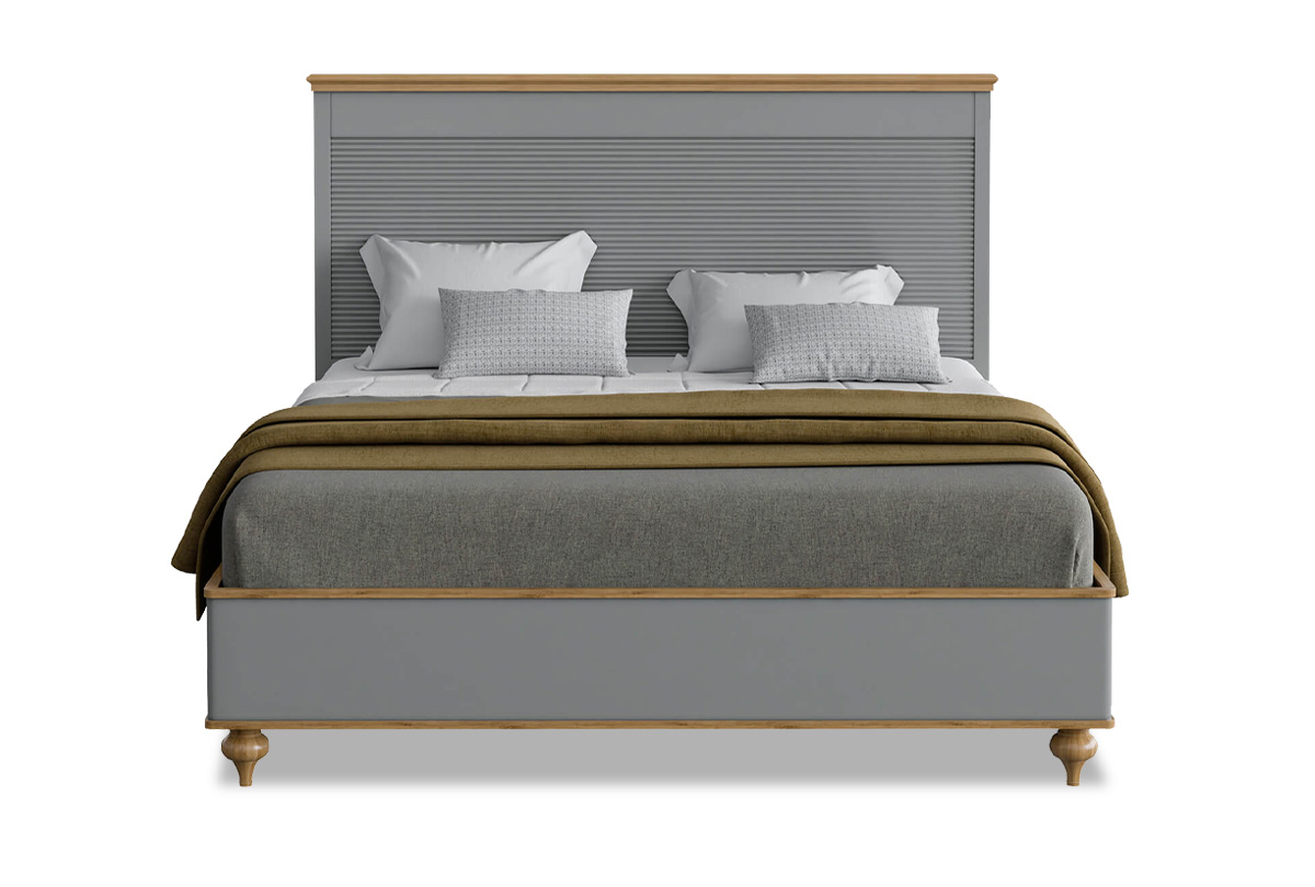Двуспальная кровать «Рандеву» (1800х2000 мм) в цвете «серый 7042+антик 24» – это простой классический дизайн в уверенном исполнении из натурального дерева. Она оснащена красивым изголовьем, без изножья. Высокие ножки – удачное решение для быстрого доступа во время уборки.