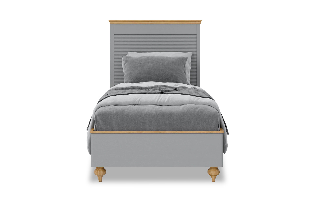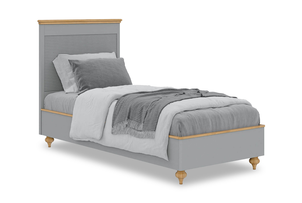 Односпальная кровать «Рандеву» (900х2000 мм) в цвете «серый 7042+антик 24» – это простой классический дизайн в уверенном исполнении из натурального дерева. Она оснащена красивым изголовьем, без изножья. Высокие ножки – удачное решение для быстрого доступа во время уборки.