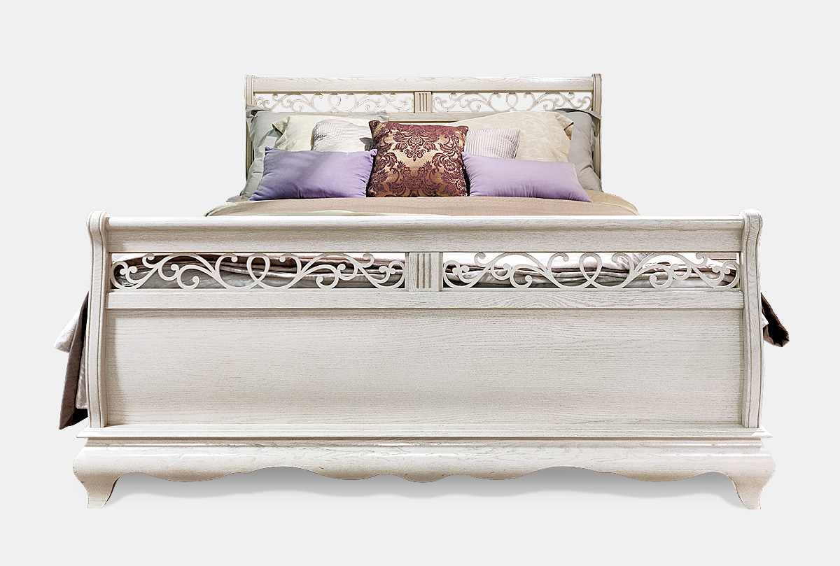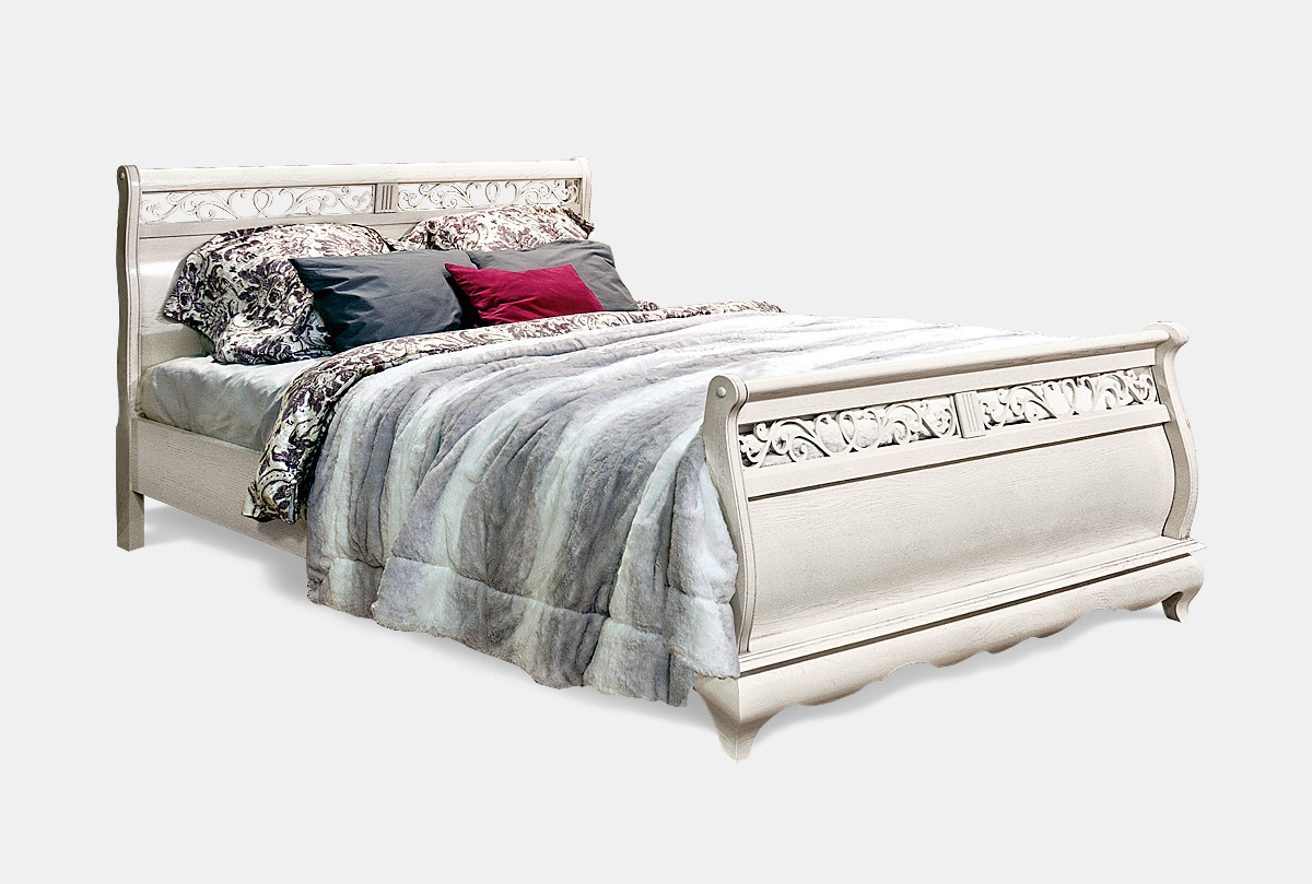 Кровать «Тэфи» (Tefi) с высоким изножьем (1400х2000 спальное место) в цвете «белая эмаль с темной патиной» из массива дуба поражает воображение ясными пропорциями и утонченным изяществом резной спинки. Кровать подходит для спальни, так для десткой или подростковой комнаты.