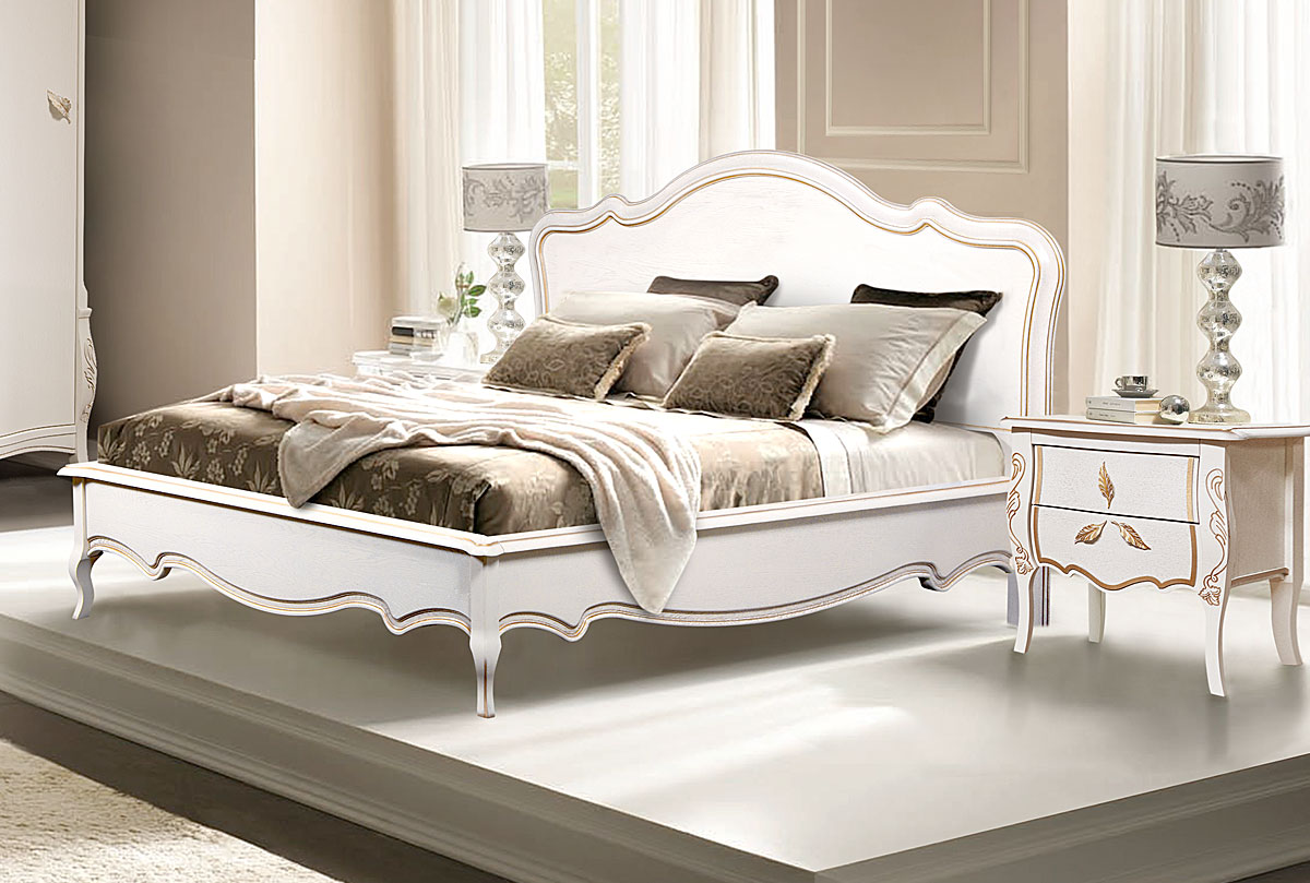 Вы любите роскошь и красоту, но при этом не намерены отказываться от комфорта и удобства? Взгляните на кровать с низким изножьем и спальным местом 180х200 см из коллекции «Трио»: она сможет удовлетворить даже самый взыскательный вкус. Фигурная форма изголовья придает кровати царский вид, а высокая спинка позволит Вам опереться на нее при чтении книги или просмотре фильма. Благородные оттенокк «белая эмаль с золотой патиной» делает кровать универсальной и позволяет ей вписаться почти в любой интерьер.