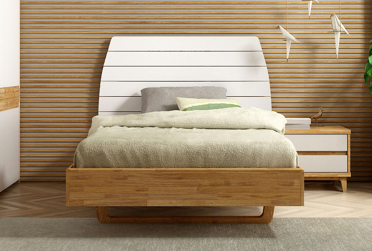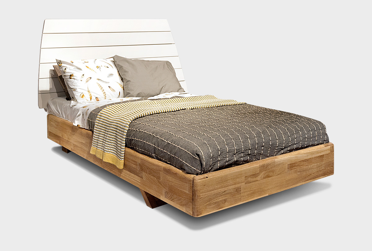 ✅ Кровать изготовлена из комбинации материалов – корпус из массива дуба, изголовье из плиты, покрытой эмалью.