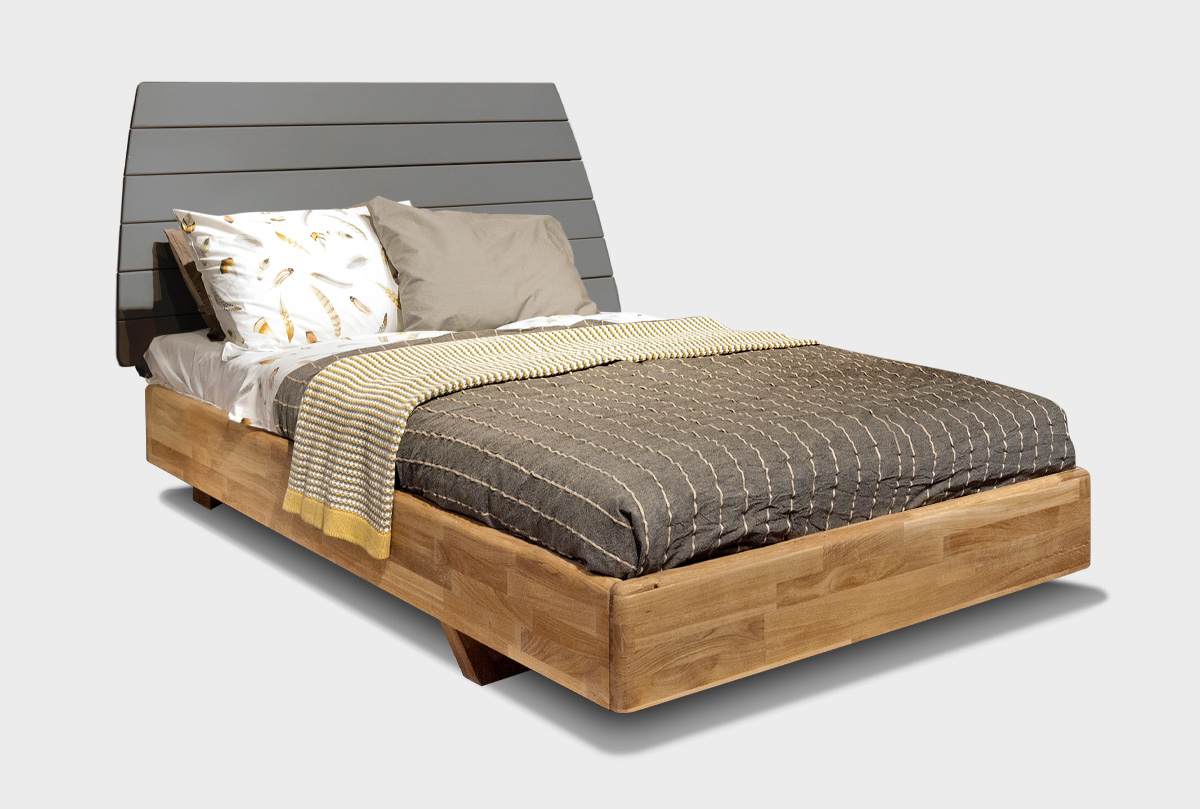 ✅ Кровать изготовлена из комбинации материалов – корпус из массива дуба, изголовье из плиты, покрытой эмалью.