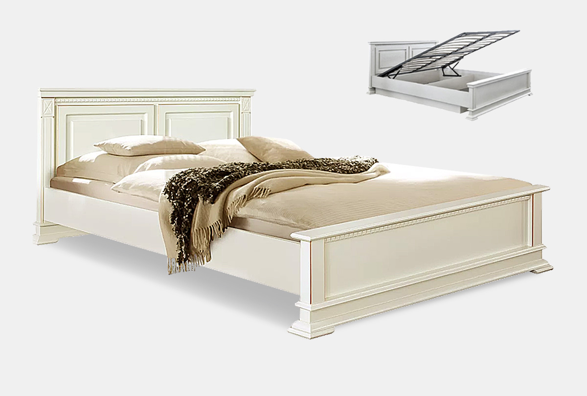 Кровать "Верди Люкс" (низкое изножье) с подъемным механизмом, слоновая кость с золочением, без матраса, (.Г000068223)