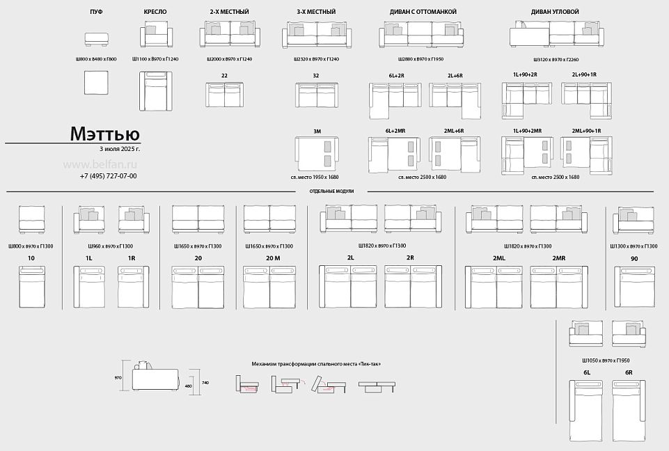 ✅ Комфортный сон и отдых для Вас или гостей обеспечит встроенный механизм для ежедневного сна «Тик-Так». Размер спального места 2500х1400 мм.