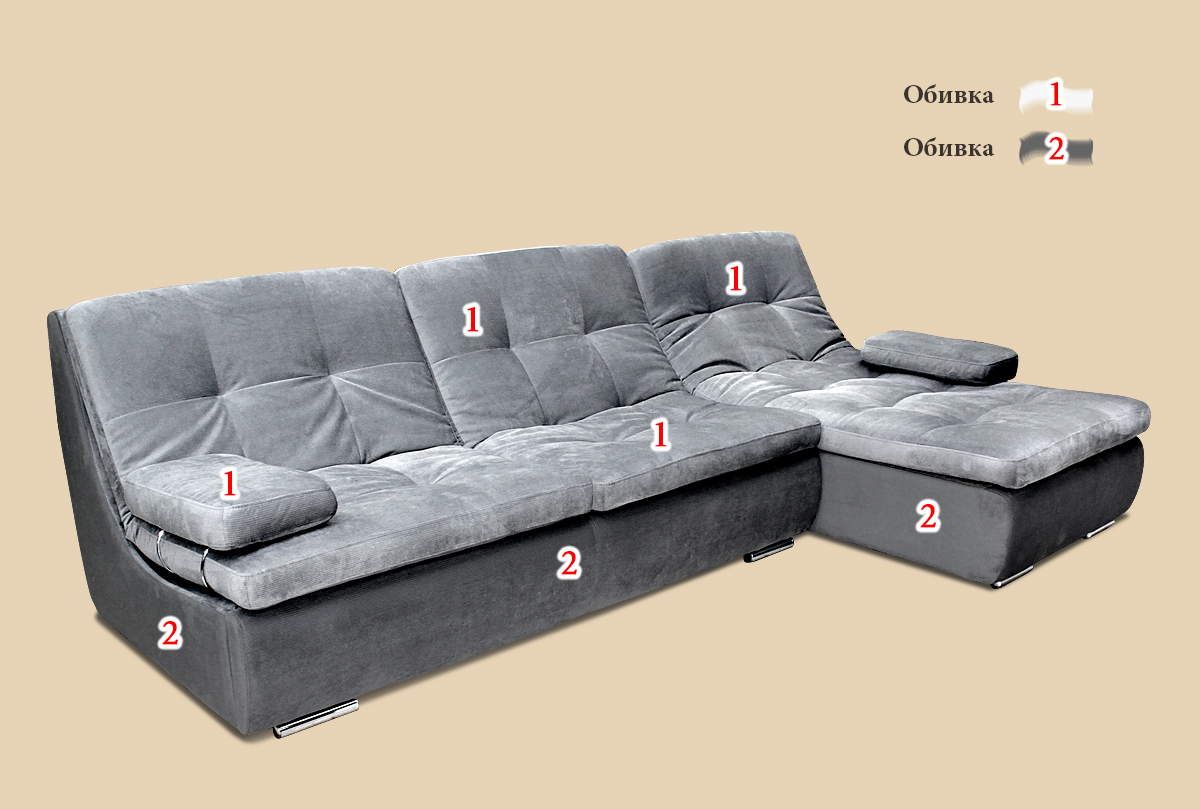 ✅ Каждое изделие можно выполнить в 2 тканях: Тк.1- Съемные подушки сидения и спинки, подлокотники. Тк.2 - Задняя спинка дивана, нижний пояс дивана (возможно использовать любой тип ткани и иск. кожи, исключением является натуральная кожа).