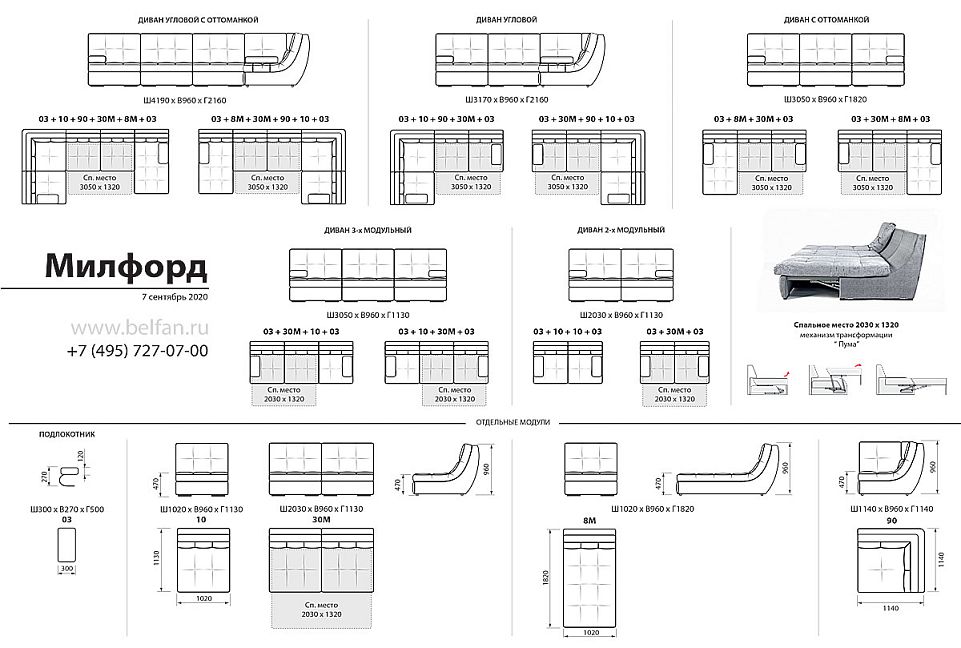 ✅ Комфортный сон для Вас или гостей обеспечивает встроенный механизм для ежедневного сна - «Пума». Размер спального места 1320 х 2030 мм.