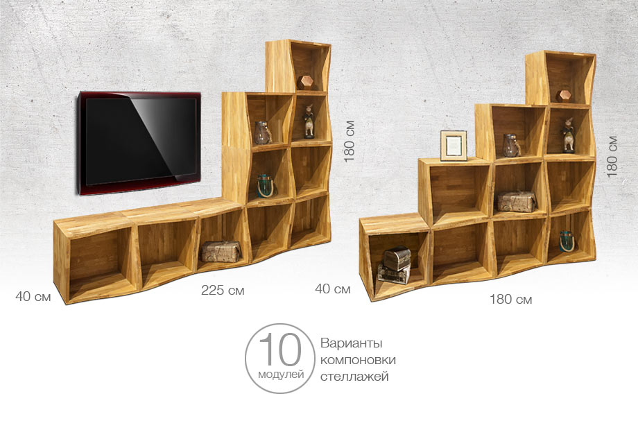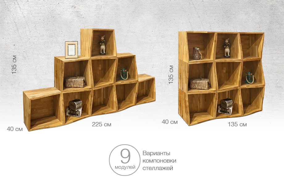 ✅ Модули можно собирать в стеллажи любой компоновки.