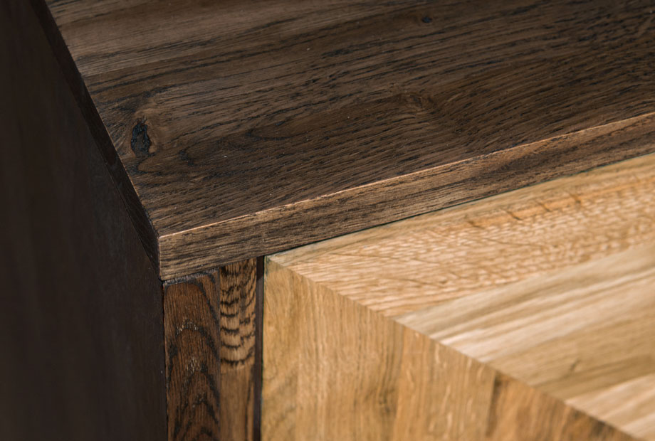 Особенности однодверного модуля для открытых стеллажей Cube Design (Куб Дизайн), фасад "косынка", "графит, бейц-масло":