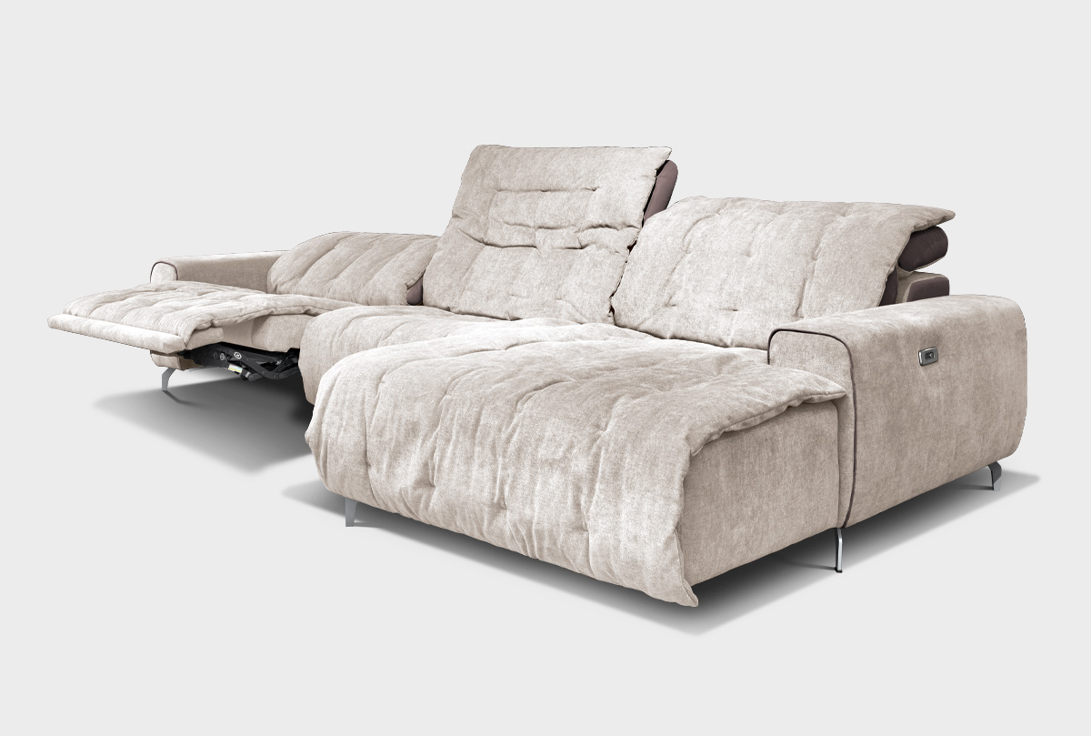 Дизайнерский диван с оттоманкой «Грей» отличается тем, что каждый модуль оснащен электрореклайнером, в свою очередь позволяющим индивидуально настраивать под себя место отдыха или работы. Скромные таланты кроются и в деталях - например, для вашего удобства и гостеприимства мы встроили механизм изменения угла наклона в спинку дивана, а в сиденье механизм выдвижения посадочного места, что прибавляет дивану еще одно комфортное место для отдыха. Своим оформлением модульный диван "Грей" демонстрирует эстетику и многообразие стиля лофт - «мягкие» углы, оптимальный угол посадки и огромная палитра текстиля.