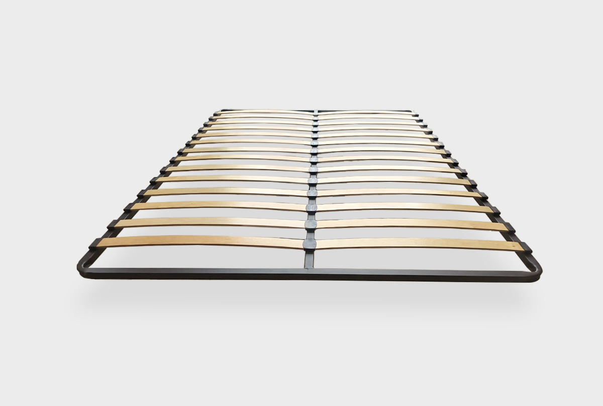 Основание с металлическим каркасом и эластичными ламелями из натуральной древесины расположены таким образом, чтобы обеспечить максимальный оздоровительный эффект. Основание предназначено для применения в комплекте с ортопедическим матрасом, так как улучшает ортопедические свойства матраса и увеличивает срок его эксплуатации за счет частичного снижения нагрузки на матрас (пружинящего эффекта), а мягкие вставки и накладки не позволят кровати скрипеть, и обеспечат сохранность при транспортировке. Основание кладется на бруски кровати зафиксированные к царге кровати.
