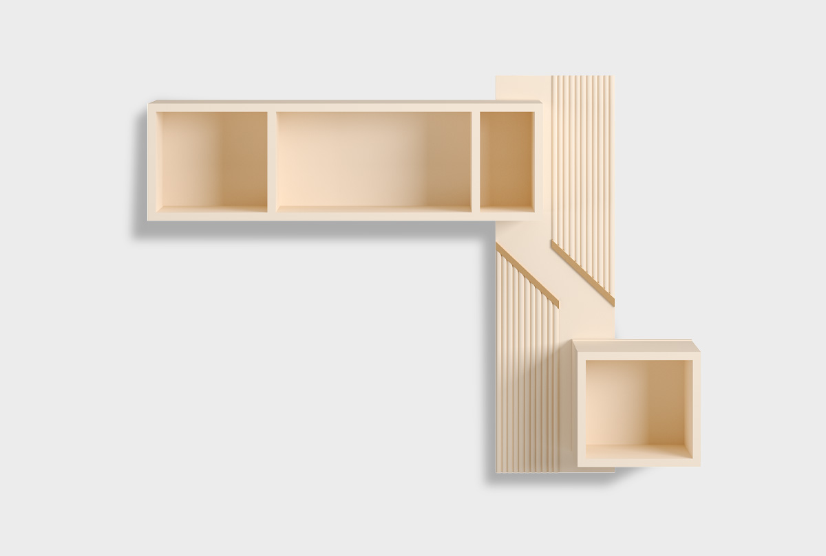 Дизайнерская настенная полка «Авеню» 2 с благородной текстурой натурального дерева, шелковисто-матовыми фасадами и металлическим декором, выполнена в цвете "нюд ".