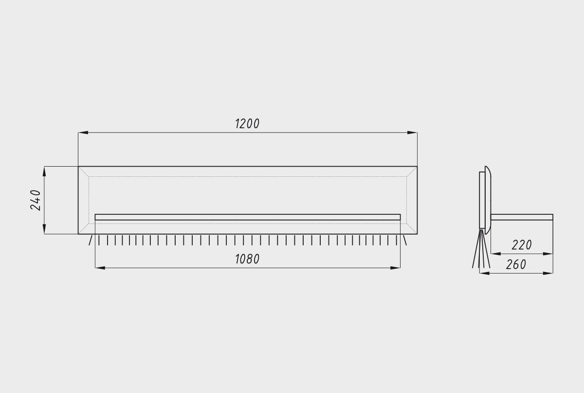 ✅ Размеры: ширина 1200 мм, высота 240 мм, глубина 260 мм — оптимальные габариты для размещения в различных помещениях.