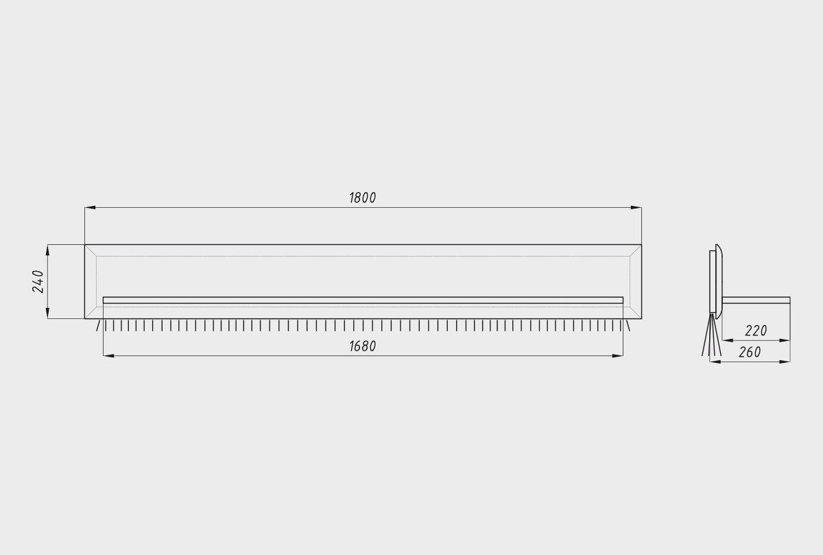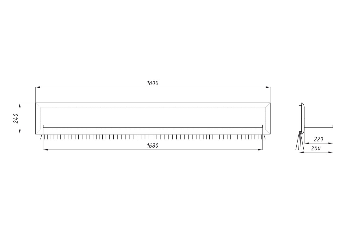 ✅ Размеры: ширина 1800 мм, высота 240 мм, глубина 260 мм — идеальный формат для размещения книг, аксессуаров или предметов декора.