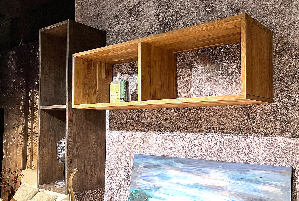 Особенности двухсекционной настенной полки Cube Design (Куб Дизайн) 2 в цвете "бейц-масло ":