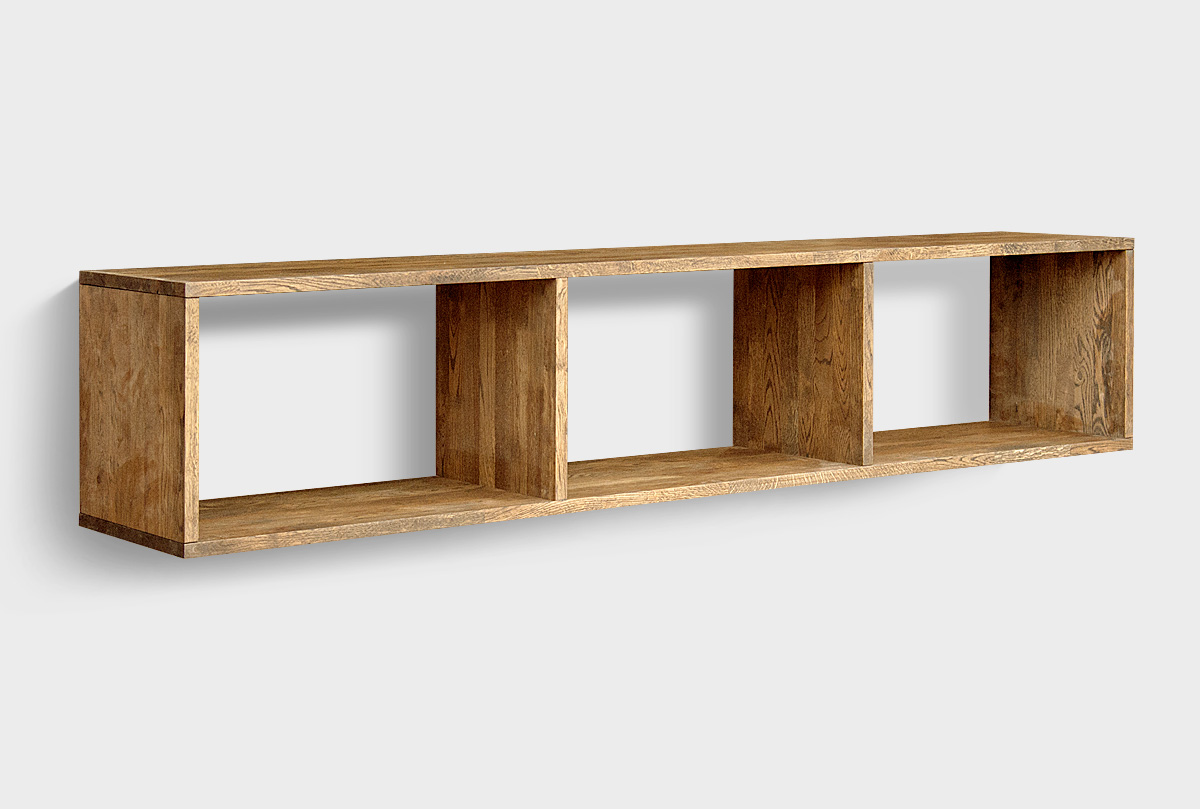 Особенности трёхсекционной настенной полки Cube Design (Куб Дизайн) 3 в цвете "бейц-масло":