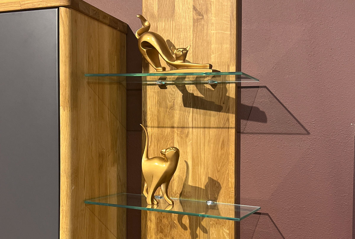 ✅ Полка изготовлена массива дуба и стекла.
