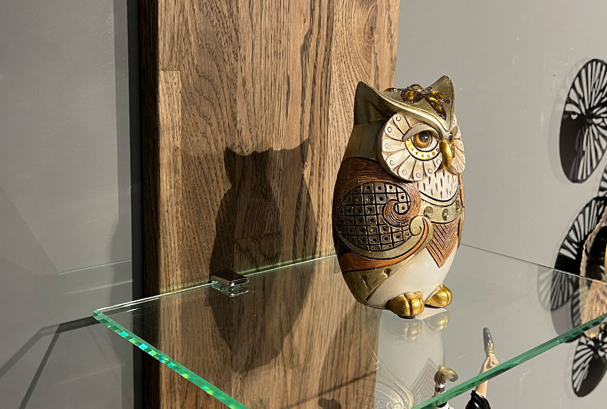 ✅ Полка изготовлена массива дуба и стекла.