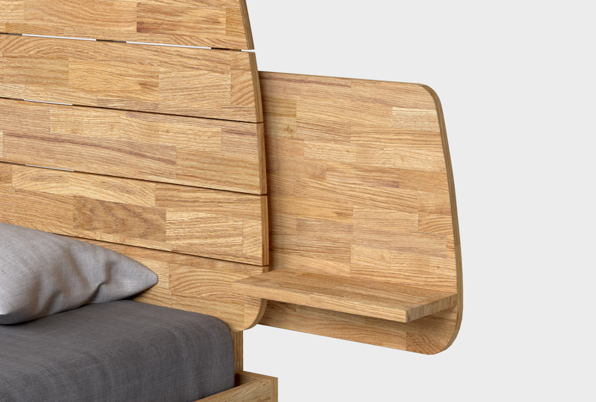 ✅ Полка крепится к ламелям изголовья и опоре изголовья – она функциональна и не занимает много места.