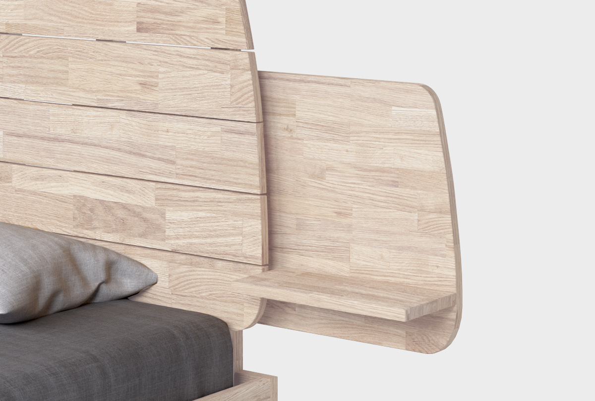 ✅ Полка крепится к ламелям изголовья и опоре изголовья – она функциональна и не занимает много места.