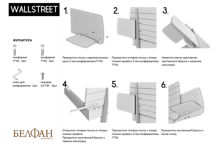 Скачать схему сборки и крепления прикроватной полки: